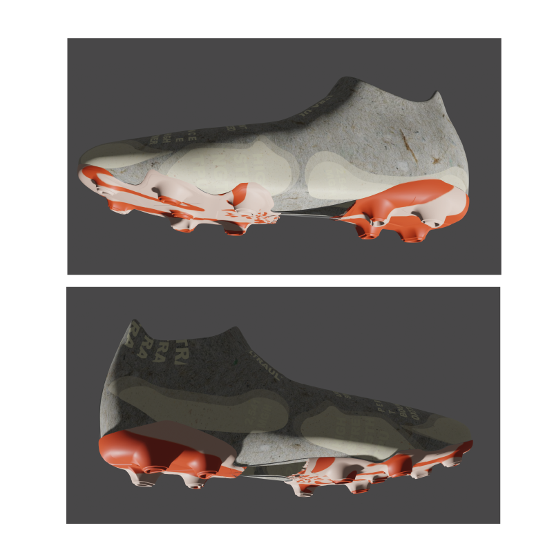 During my internship in footwear design at PUMA HQ my first task was to create a 3D model for the Future Z. The team wanted this as well as a detailed UV map so I could quickly mock up new Graphic concepts on the 3D model. I used Blender and Keyshot to create the model and made various graphics to demonstrate the functioning UV map.
